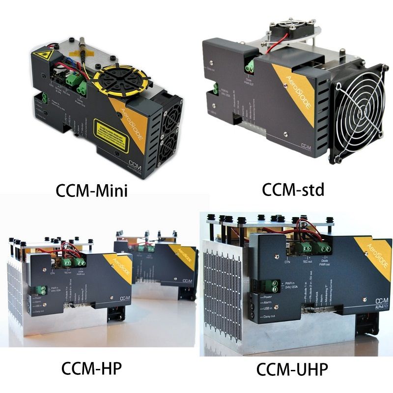 CCM(Cool and Control Multimode)是一种24V供电设备。提供四个子型号,其中AeroDIODE大功率激光二极管驱动器的*大光功率分别为20W,60W,120W,180W。激光功率稳定性<0.05%,*大调制率达到100kHz。低功率版配置包括1* TEC冷却器30*30,标准版配置包括2*TEC冷却器30*30,高功率版配置包括2*TEC冷却器40*40,超高功率版配置包括2*TEC冷却器50*50。
