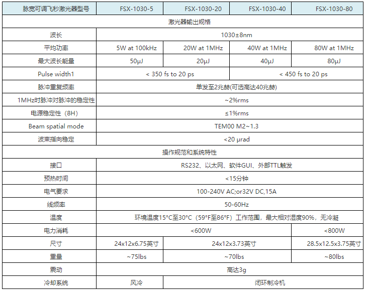 2022年1月份,Photonics Industries在SPIE Photonics West 2022展会上推出了全新的飞秒(fs)脉冲宽度激光器系列FSX系列,FSX脉宽可调飞秒激光器共有4种型号,分别为:FSX-1030-5,FSX-1030-20,FSX-1030-40,FSX-1030-80。该系列可以让用户获得指定的脉冲宽度,以填补用户某些应用项目的激光器空白,例如以下应用: