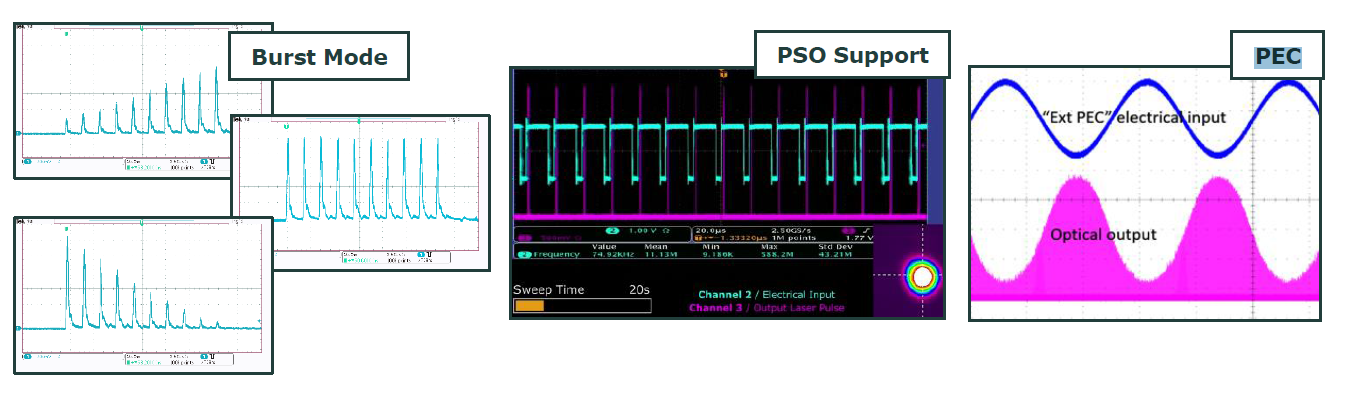 -PSO(位置同步输出)支持对任意PRF进行外部触发,同时保持恒定、稳定的脉冲能量和低抖动。