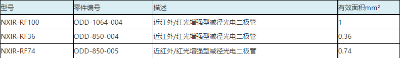 存储和工作温度范围-40°C~125°C,*高结点温度是125°C。NXIR-RF100光电二极管有效面积的典型值为1mm²,在850nm的波长下,灵敏度是0.62A/W,在1064nm下,响应速度是0.35A/W。光谱响应范围λ为320nm~1100nm。在Vr=3V时,暗电流的典型值是0.1nA,*大值是0.75nA。在VR=10mV时,分流电阻*小值是200MΩ,典型值是500MΩ。在IR=10µA时反向击穿电压为50V,在VR=0V的测试条件上,电容的*大值为3pF。VR=5V时上升时间典型值为50纳秒。