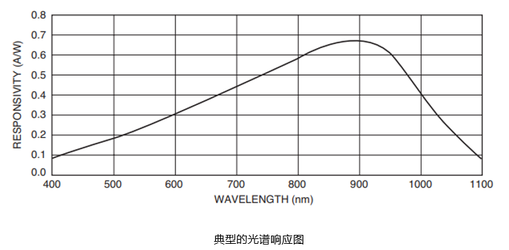 从光谱响应图可以看到在波长850nm之前,灵敏度是随着波长增加而增大,在波长900nm之后,灵敏度随着波长增加而减小。