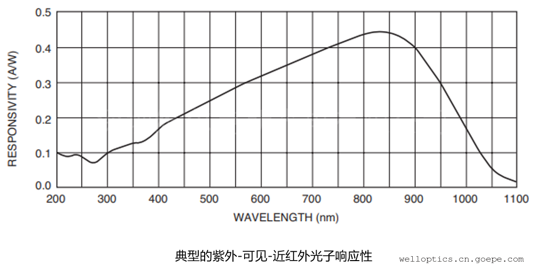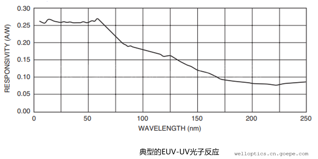 在VR=5 V测试条件下,暗电流典型值是0.9na,*大值是5na。VR=10 mV, 分流电阻的典型值是300欧姆。当VR=0 V, f=1MHz,结点电阻是30pF,当VR=10 V, f=1MHz时结点电阻是7.5pF。光谱应用范围是250nm-1100nm。当λ=633nm, VR=0V时,反应性*小值是0.32A/W,典型值是0.36A/W,当λ=900nm, VR=0V时,反应性*小值是0.5A/W,典型值是0.6A/W。当IR=10μA,击穿电压*小值是25V,典型值是60V。当VR=0V, λ=950nm时,噪声等效功率2.5x10-14 W/√HZ。当RL=50Ω, VR=0V,上升时间典型值为190纳秒,当RL=50Ω, VR=10V,上升时间典型值为8纳秒。反向电压100V。暗电流与电压图同AXUVPS7分段光电二极管相同。