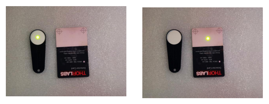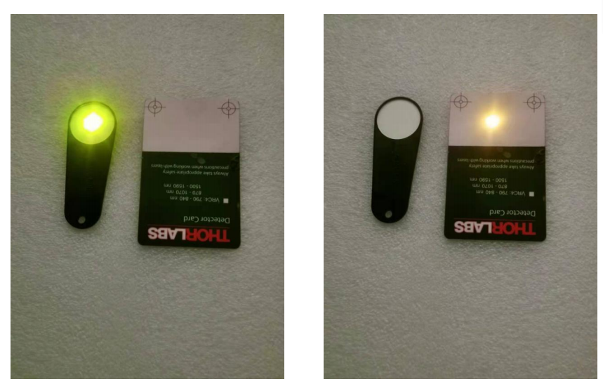激光可视卡一般型号拿1064nm和1550nm波长照射下显示效果和索雷博的VRC4显示效果进行对比,左边是我们的超高亮多波段红外探测卡,右边是索雷博的VRC4激光可视卡,可以看到在1064nm和1550nm照射下两者的效果图没有明显区别。索雷博的VRC4价格为820元。