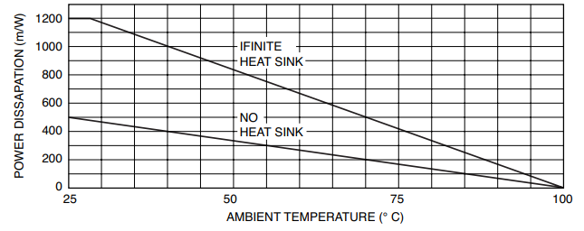存储和工作温度范围为-55°C~100°C,*高结点温度115°,热阻1典型值是150°C/W,热电阻2典型值是60°C/W。通过在静止空气中测量,通过引线的热量传导*小,将传热降至*低。空气快速循环,使外壳温度保持在25°C。