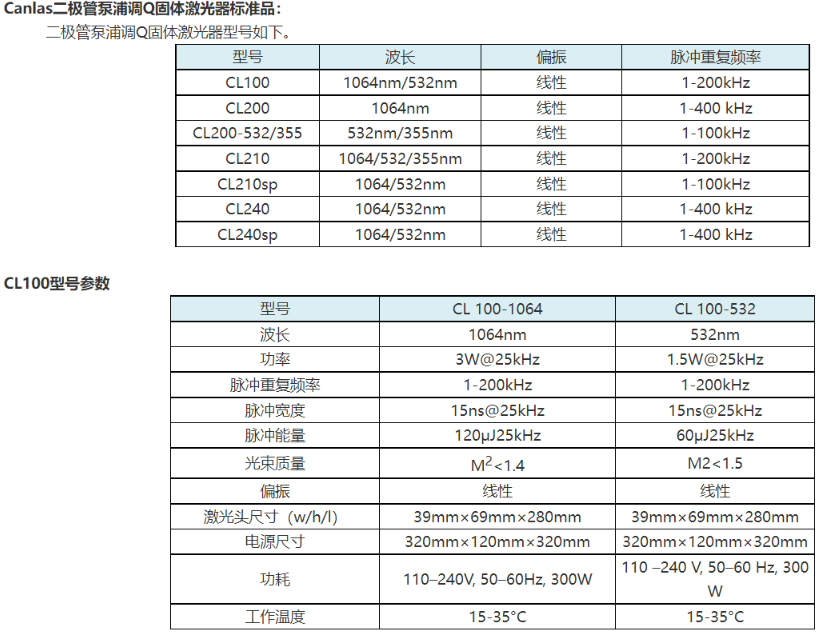 德国Canlas激光器波长有355nm、532nm和1064nm,峰值功率高,高重复频率。以优异的光束质量和高性价比成为激光器的不二选择。