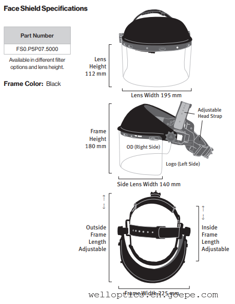 Laservision激光面罩由耐用、坚韧、耐热/耐寒的轻质丙烯酸(亚克力)材料制成,可提供*大的舒适度和对各种激光的保护。这种激光防护罩适用于焊接操作中,佩戴在头部,能够*大限度的保护眼睛和面部,防止激光的伤害,因此还称呼它为激光安全头盔,亚克力防护面罩、激光焊接面罩(Laser Welding Face Shields)和面部防护罩。这款激光头盔不仅重量轻,舒适度高,还可调节头片,方便佩戴,并可容纳眼镜。如果不需要全面面部保护时,可以选择激光安全眼镜。