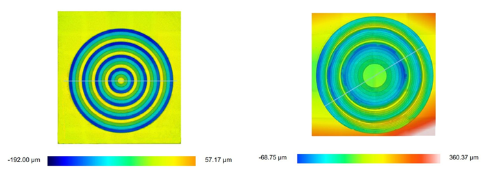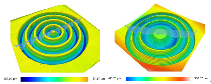 0.6THz频率的衍射棱锥和衍射透镜的轮廓仪照片