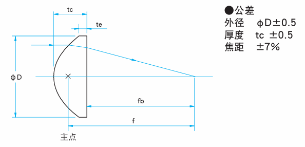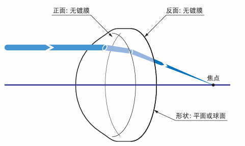 光学聚焦透镜将其中一面做成非球面形状,用单透镜就可以得到约NA0.5的大发散角(会聚角)。从小口径的小型透镜到长后焦距的大口径透镜,备有各种外径尺寸。光学聚焦透镜可以在可见光到2μm红外的广泛谱区内使用。