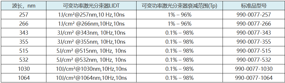 EKSMA OPTICS可变激光分束器990-0077、990-0078特性