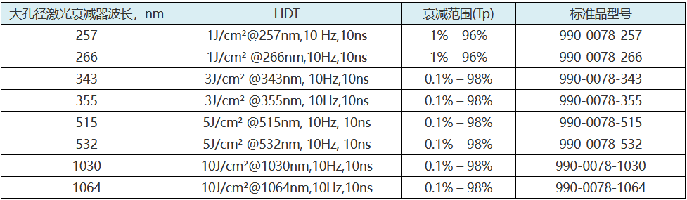 - EKSMA OPTICS可变激光分束器990-0077、990-0078透射光束的衰减范围:典型值0.1% – 98%;257 nm 和 266 nm为1% – 96%