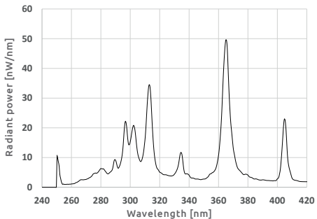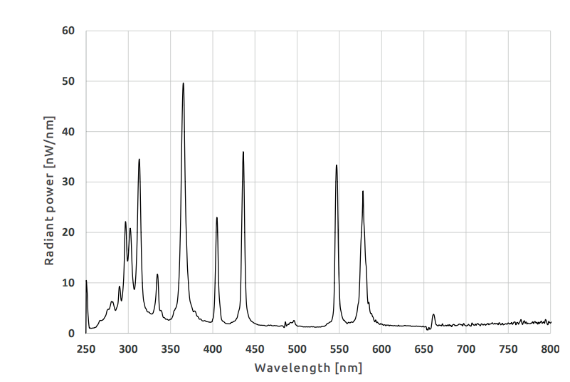 LEJ深紫外照明系统(Deep UV illumination system):这是整套设备的核心名称,采用特殊设计的光学系统,能够在深紫外波段提供稳定均匀的照明。LEJ深紫外照明系统特别适合微纳结构检测,其稳定性在同类产品中处于领先地位。深紫外照明系统的光谱特性如图所示。