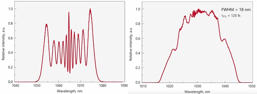1064nm fs光纤种子源FFS200(左)和LightWire FFS系列光纤种子源FFS100CHI/FFS200CHI(右)的典型光谱