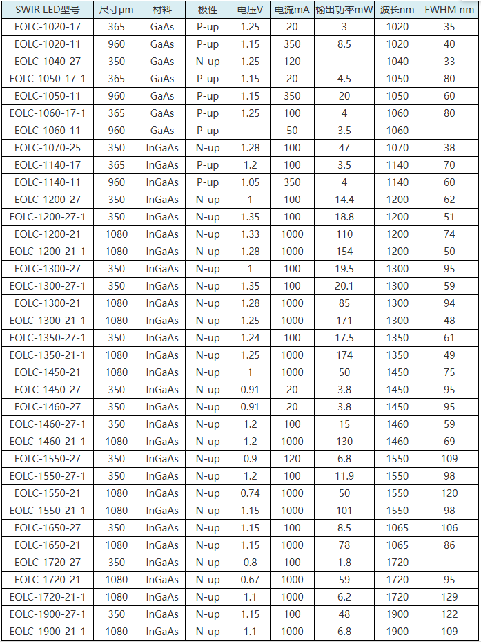 EPIGAP短波红外LED芯片型号