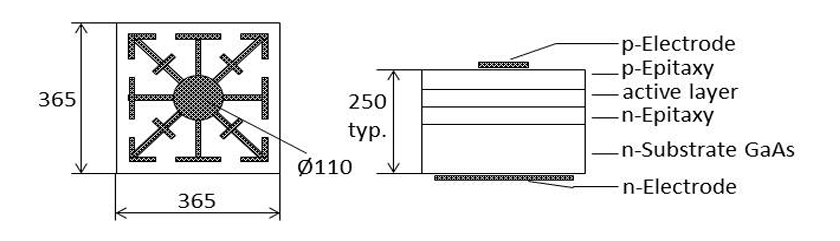 红外InGaAs LED芯片机械尺寸