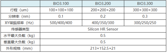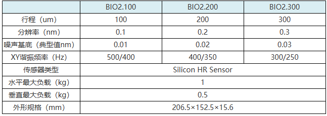 BIO2两轴轻薄型纳米压电载物台主要参数