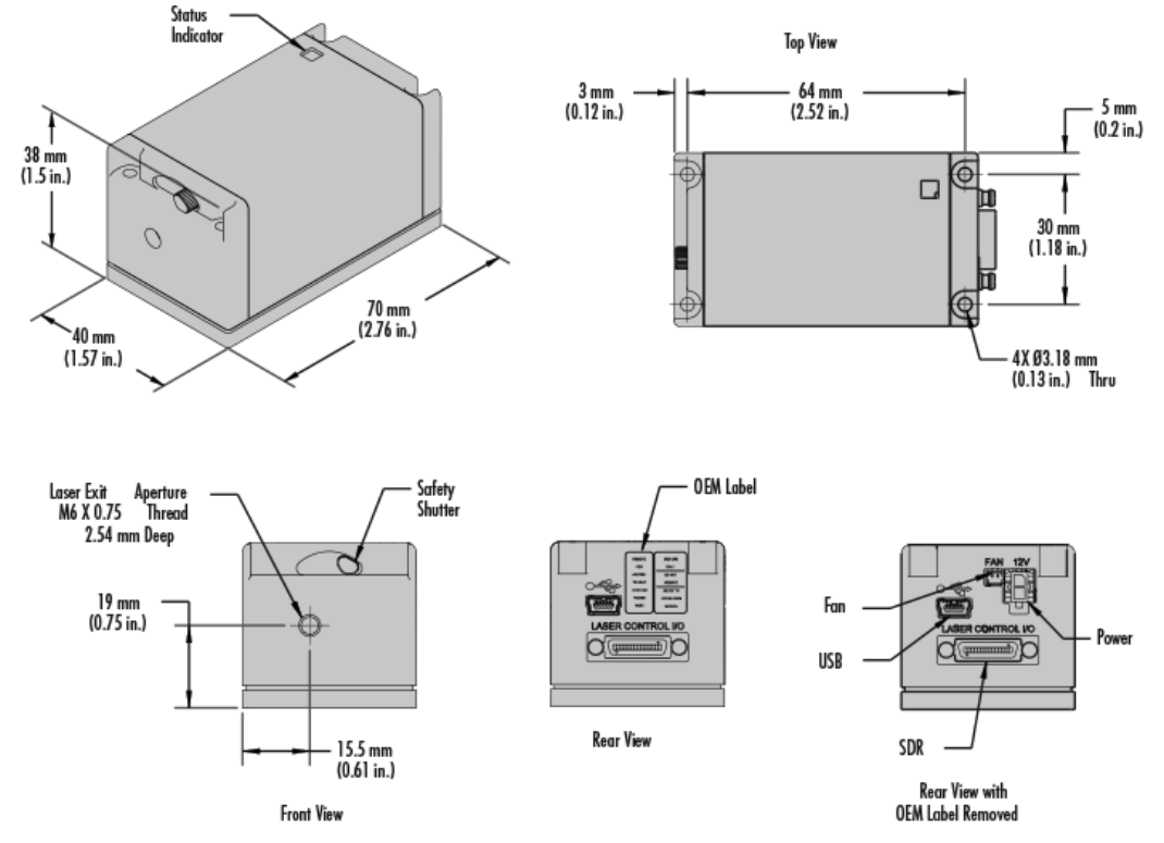 注意:必须搭配电源(单独出售)进行操作。CDRH认证系统须使用遥控装置,同时建议使用OBIS散热器。