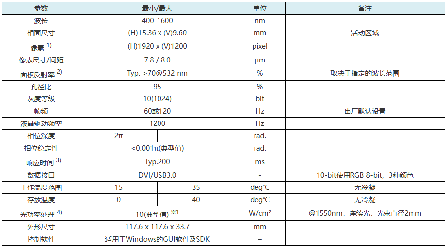 相位调制型LCOS-SLM/SLM-200详细参数: