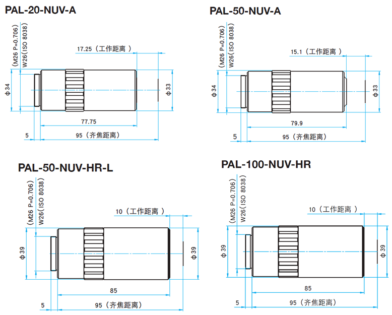 Optosigma近紫外物镜PAL-NUV技术参数表: